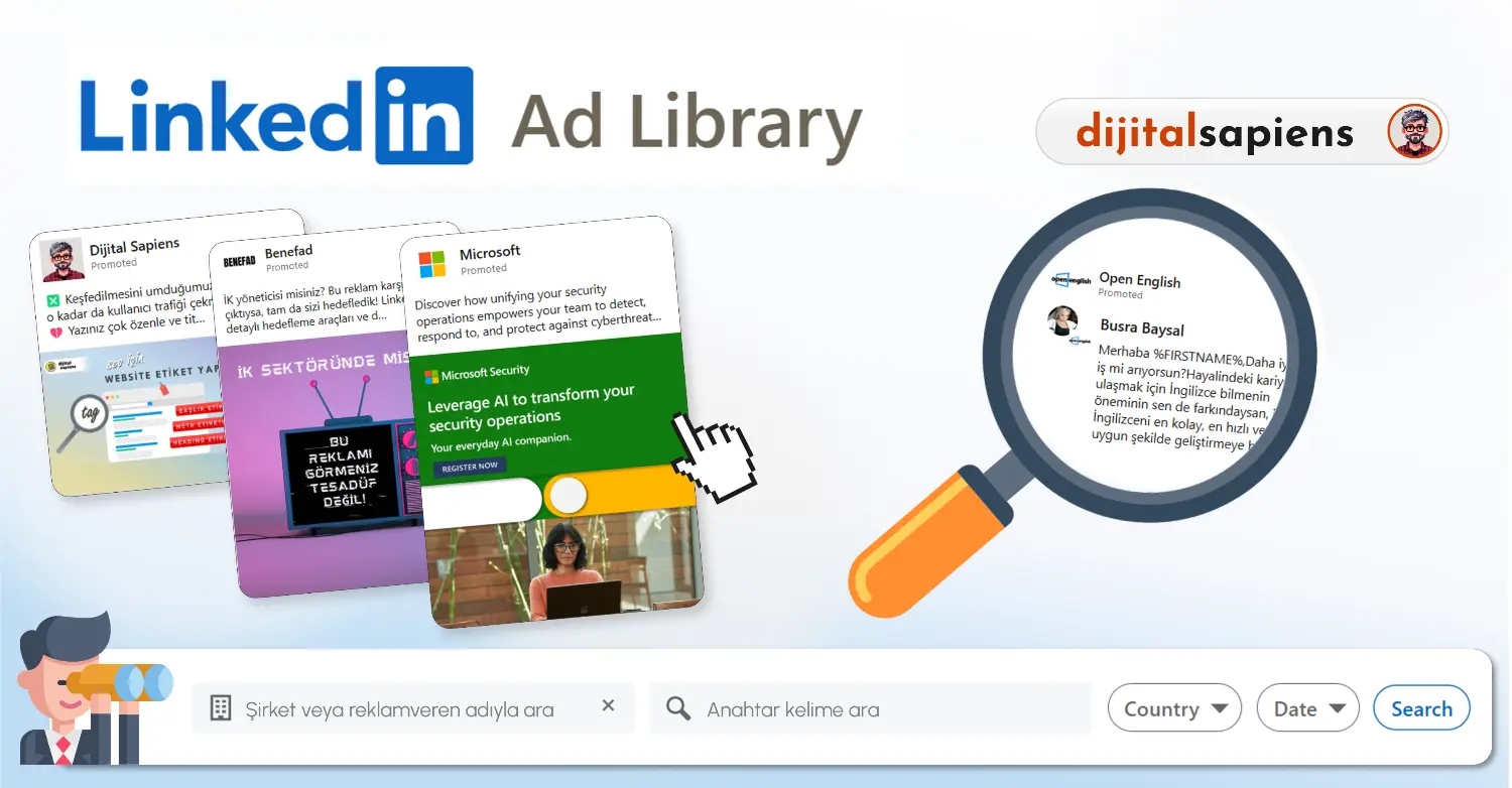 LinkedIn Reklam Kütüphanesi, Linkedin reklamları ile reklamverenlerin daha önce yayınladıkları reklamları aramanıza ve onlar hakkında bazı bilgileri görmenize olanak tanıyan harika bir araçtır. ⭐